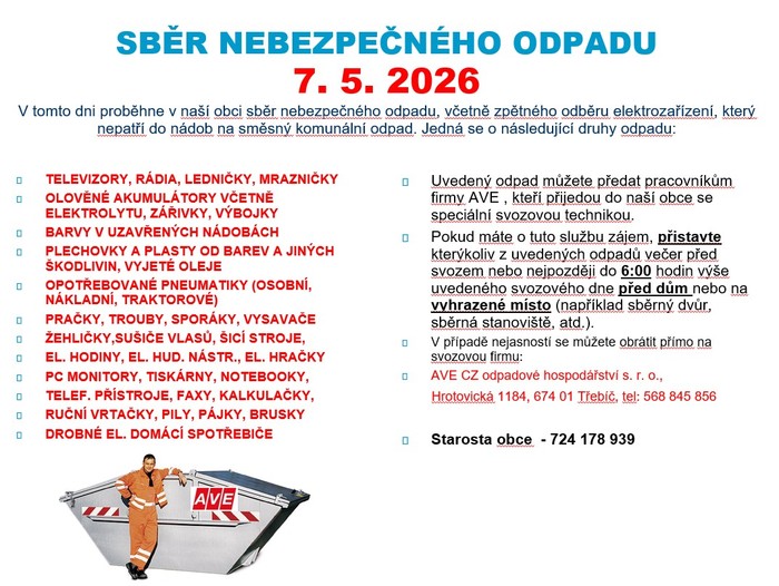 Úvod > Aktuality > Sběr nebezpečného odpadu 2026