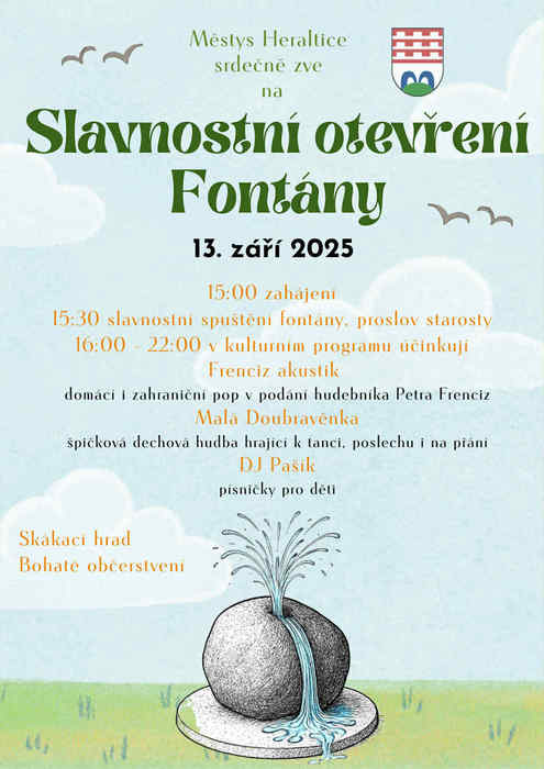 Srdečně zveme všechny občany na slavnostní otevření fontány v Heralticích.
